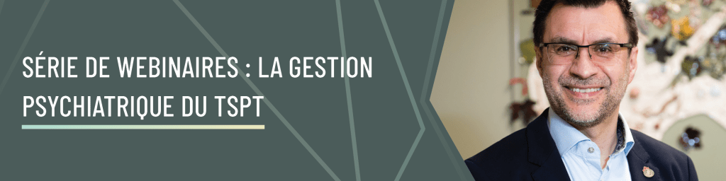 Si vous avez manqué notre série de webinaires sur la gestion psychiatrique du trouble de stress post-traumatique (TSPT), les enregistrements sont maintenant accessibles (en anglais avec sous-titrage français disponible. Remarque : Le sous-titrage est automatisé. Nous ne pouvons donc pas en confirmer l’exactitude.). Conçue pour permettre aux participants de comprendre le rôle que jouent les médicaments et d’autres formes de thérapies dans le traitement du TSPT, la série de webinaires met l’accent sur l’importance d’une approche personnalisée qui répond aux besoins uniques de la population des vétérans.